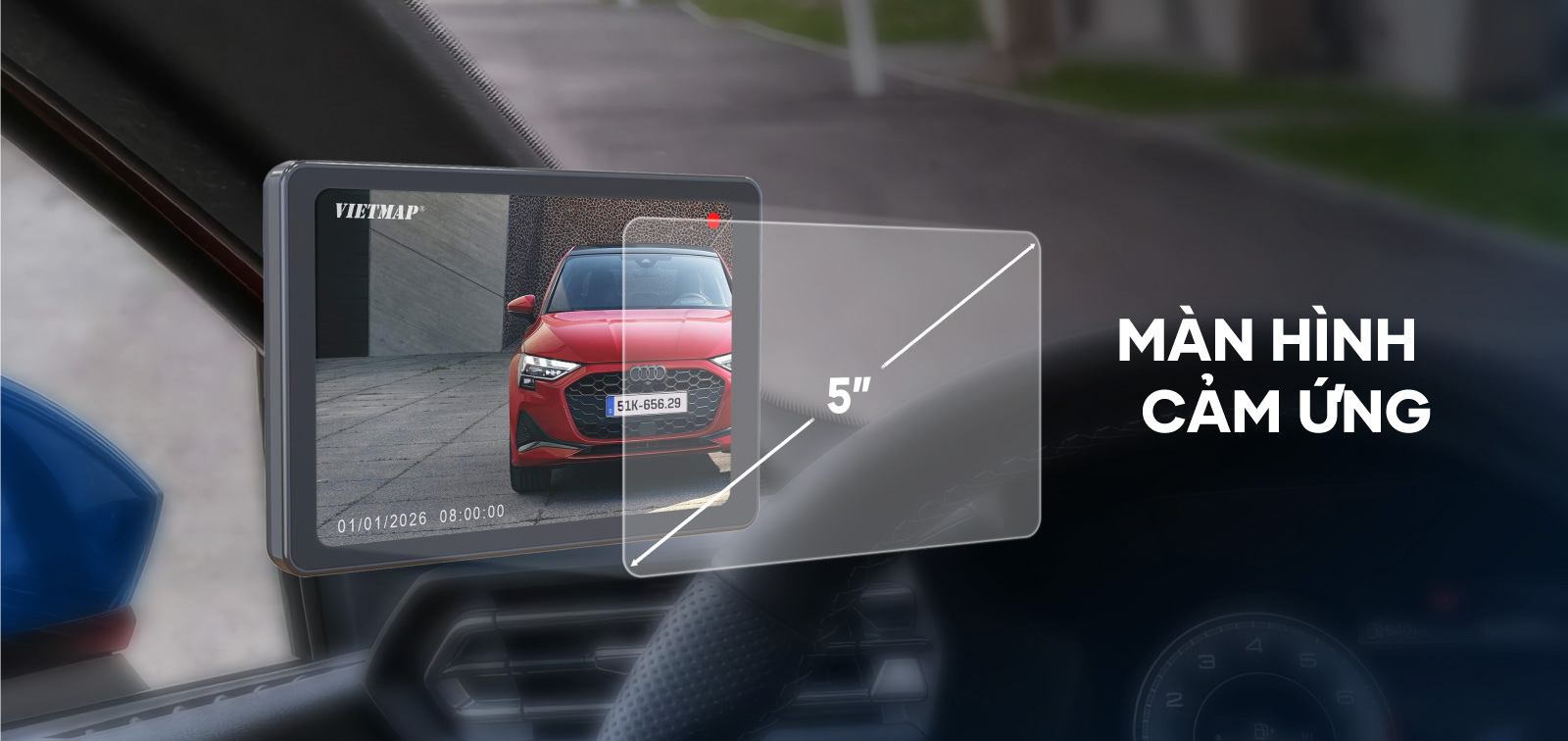 VIETMAP SC620 trang bị màn hình cảm ứng kích thước 5 inch giúp quan sát dễ dàng, hỗ trợ điều chỉnh góc nhìn trực tiếp bằng thao tác cảm ứng, mang lại sự linh hoạt và tiện lợi cho người sử dụng. Ngoài ra, khi cài vào số lùi R, thao tác trên màn hình để điều chỉnh góc nhìn 2 bên, giúp lùi xe dễ dàng hơn.