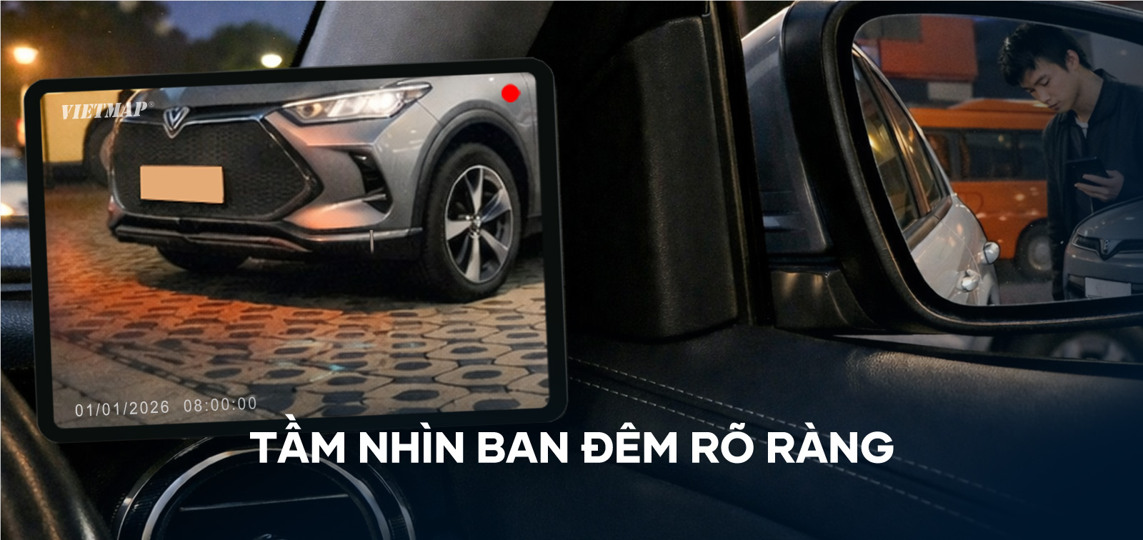 Khi di chuyển vào ban đêm, trong hầm xe, hay di chuyển ngoài đường việc chuyển làn, đỗ xe hay lùi xe sẽ cực kỳ khó khăn. VIETMAP SC620 hỗ trợ quan sát rõ ràng 2 bên hông xe, giúp thao tác dễ dàng và chính xác hơn.
